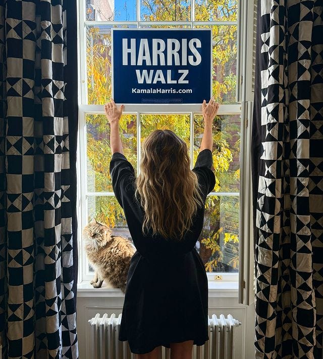 Re: SJP placard. Great photo, but practically speaking, only the people in her living room would see it. Those things aren't double-sided. I know, I know, but that kind of shit bothers me.